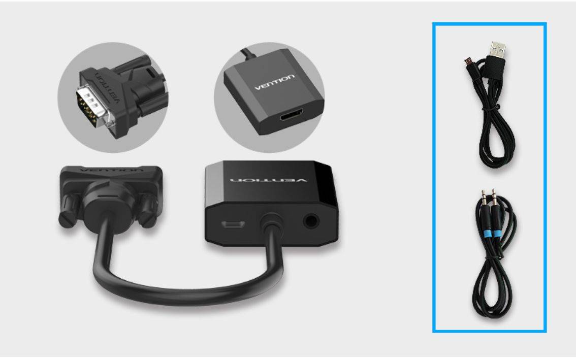 Vention Adaptor Converter VGA to HDMI w/ Audio Micro USB Power ACE