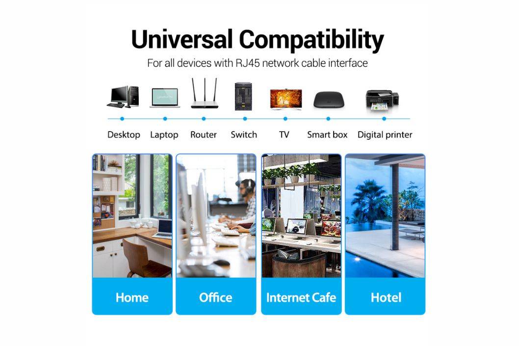 Specifications (2):🔹 Length : 0.5M / 1M / 1.5M / 2M / 8M / 10M🔹 Connector Interface : RJ45 Male to Male🔹 Connector Material : Gold-plated🔹 Shell : PC🔹 Chipset : Three-pronged Chip🔹 Shielding : UTP🔹 Jacket : PVC
