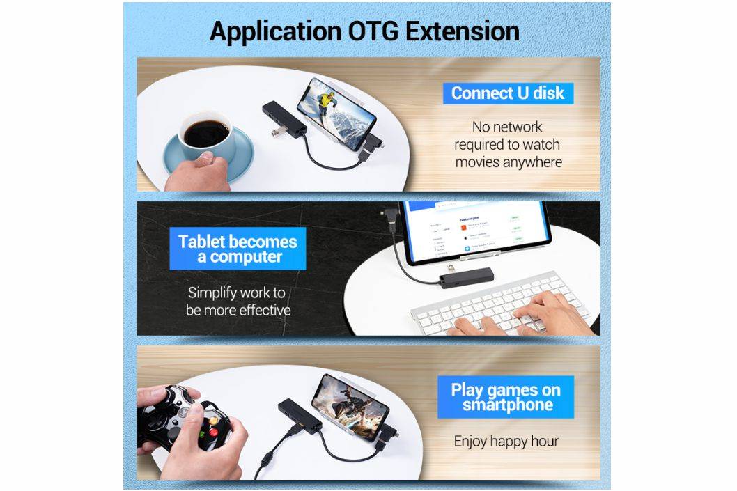 Vention HUB USB A 2.0 4 Port High Speed w/ USB Power Input CHM