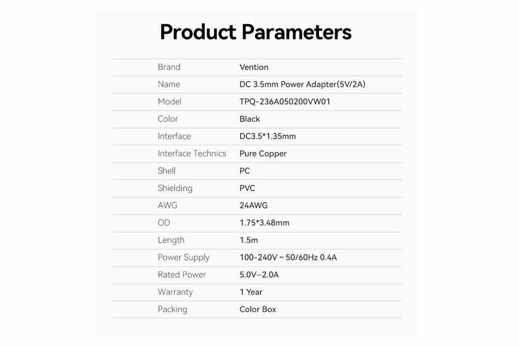 ⭐️ Vention Adaptor ACDC 5V/1A Power Supply Adapter AC to DC 3.5mm ⭐️