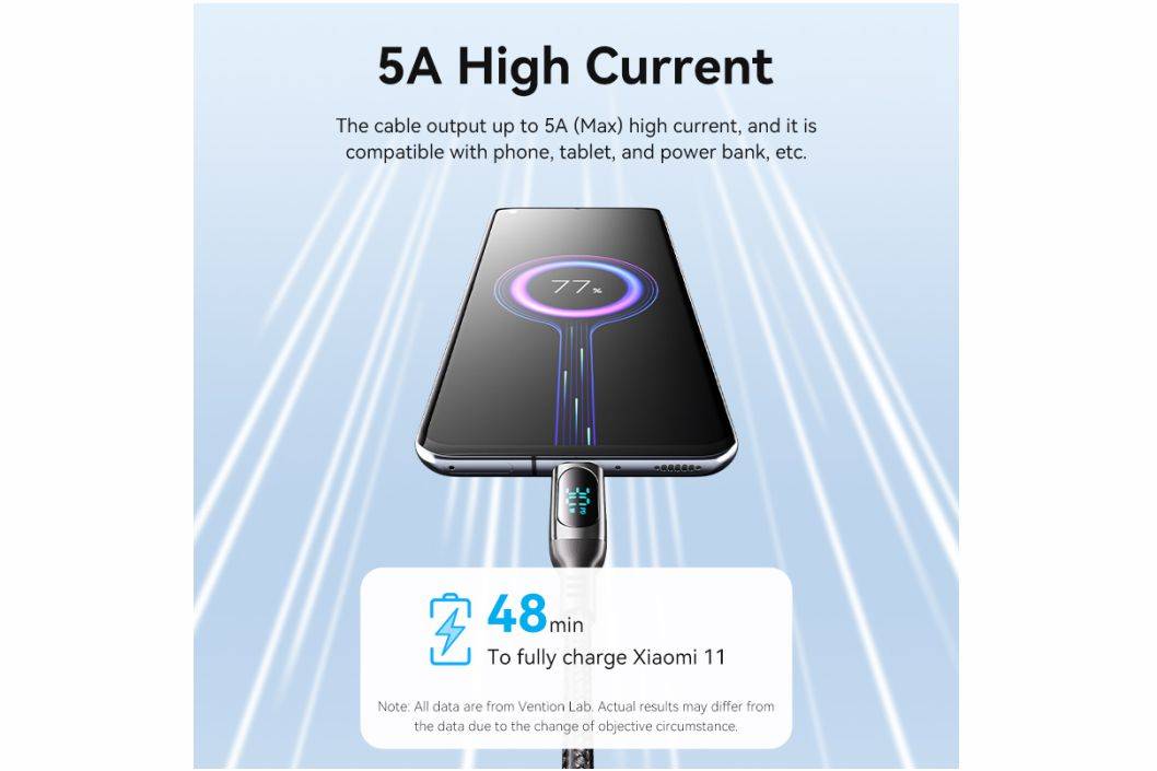 Vention Kabel Charger LED USB Type C Fast Charging Android Apple TAY