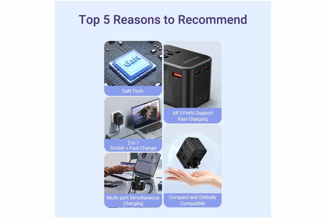 ⭐️ Vention Travel Adaptor Universal USB Adapter Fast Charger AC Plug ⭐️