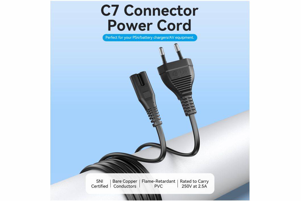Specifications :🔹 Length : 1.8M🔹 Conductor : Bare Copper🔹 AWG : 18AWG🔹 Jacket : PVC🔹 Type Plug :- ZCI : Non-Polarized IEC 60320C7 / figure-8 / Infinity / Shotgun Plug🔹 Power Supply :- ZCI : 250V/2.5A🔹 Diameter :- ZCI : 5.5mm x 3.4mm