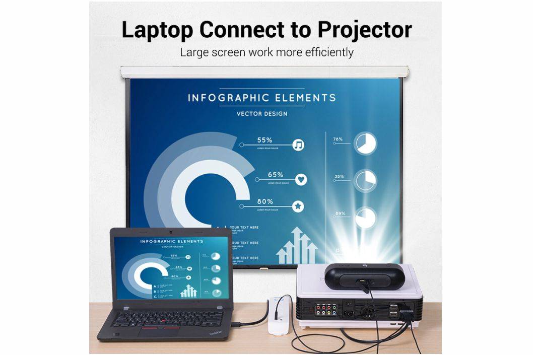 🔹 Connector Interface : HDMI Male to VGA Male with USB and 3.5mm Audio