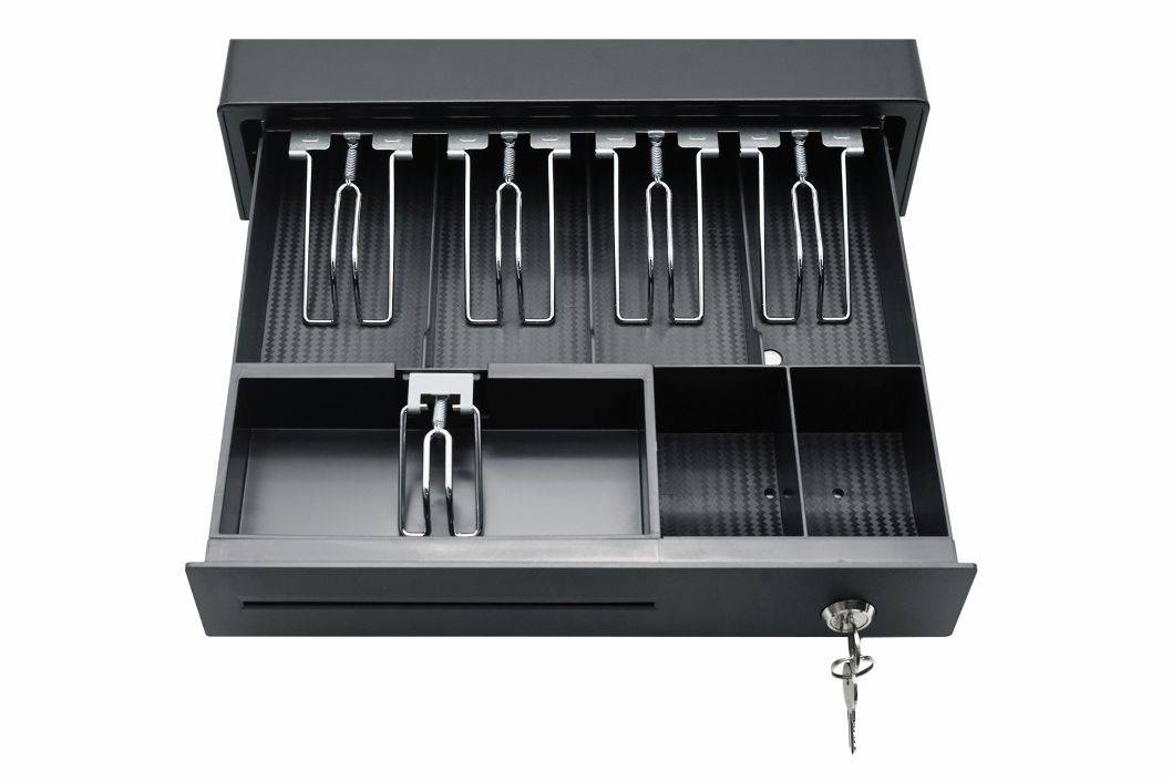 Cash Drawer atau yang biasa di sebut laci uang perangkat alat kasir yang digunakan untuk menyimpan yang pada saat usai melalukan transaksi pembelian dan pembayaran. laci uang atau cash drawer ini di lengkapi dengan koneksi RJ11 yang di hubungkan dengan printer yang sudah tersedia koneksi rj11 nya. sehingga pada saat melakukan print otomatis laci akan terbukan secara otomatis.