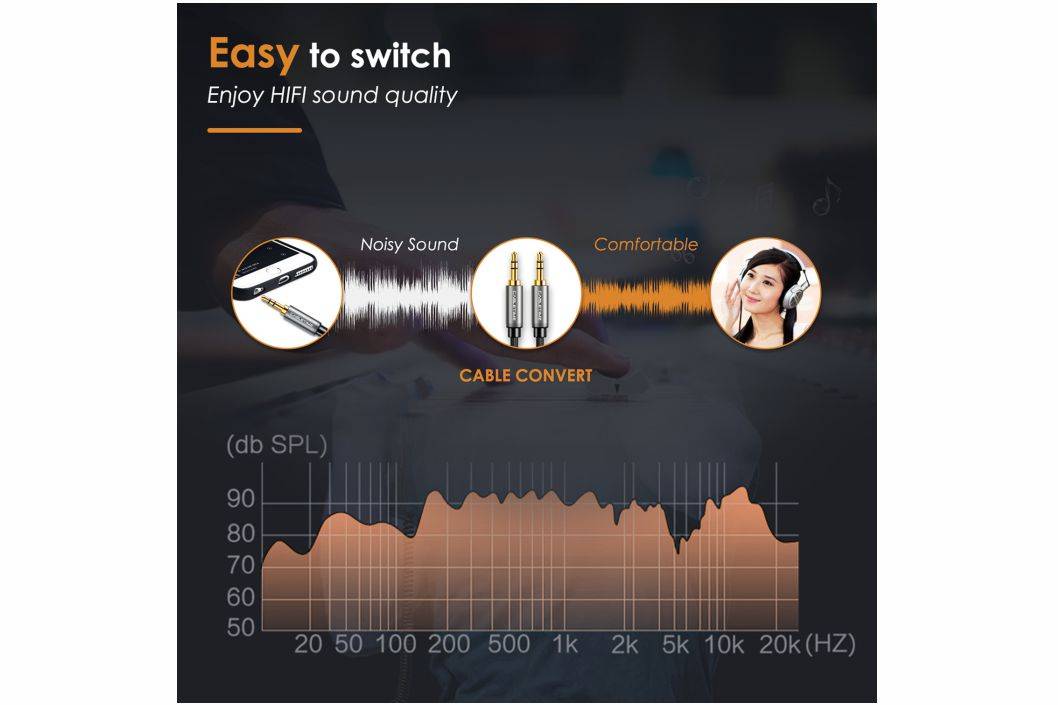 Konektor Gold-plated yang tahan karat dan housing aluminium untuk memastikan suara yang handal dan jernih, selain itu dilapisi dengan bahan braided dan tembaga berkualitas tinggi untuk mengurangi gangguan audio