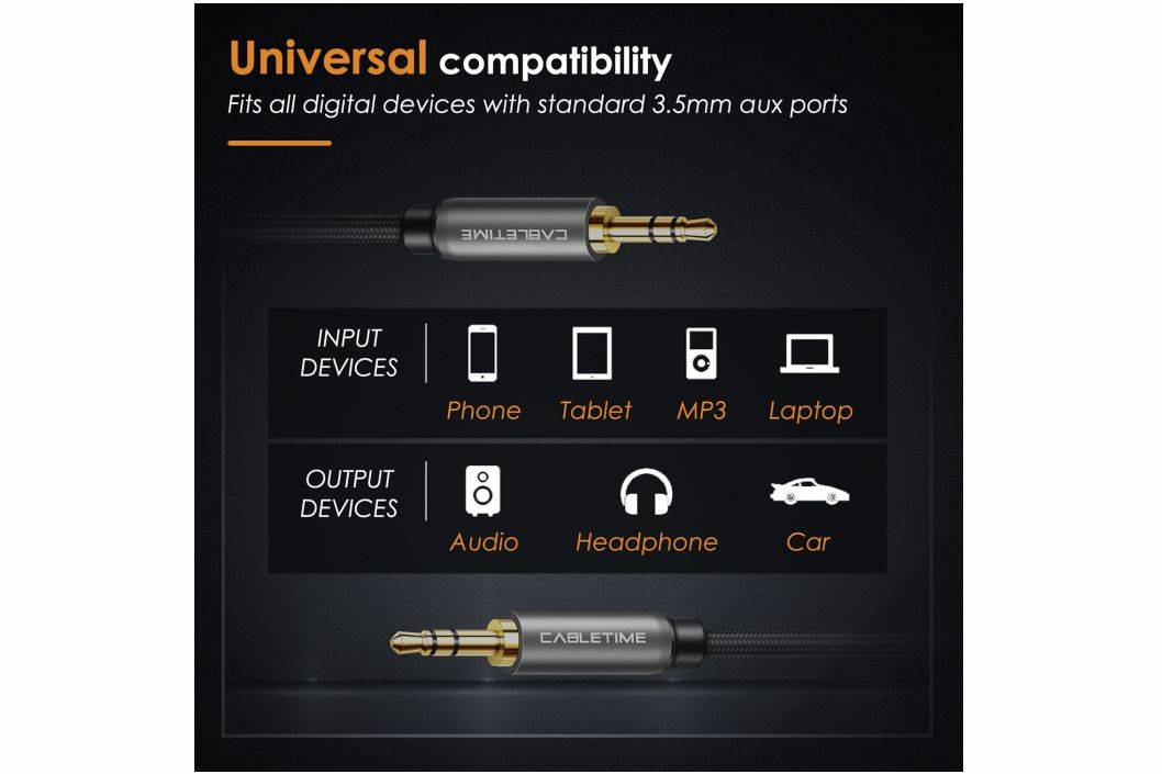 1 pcs Cabletime Aux 3.5mm Male to Male