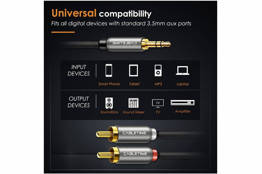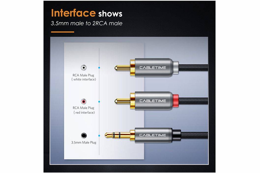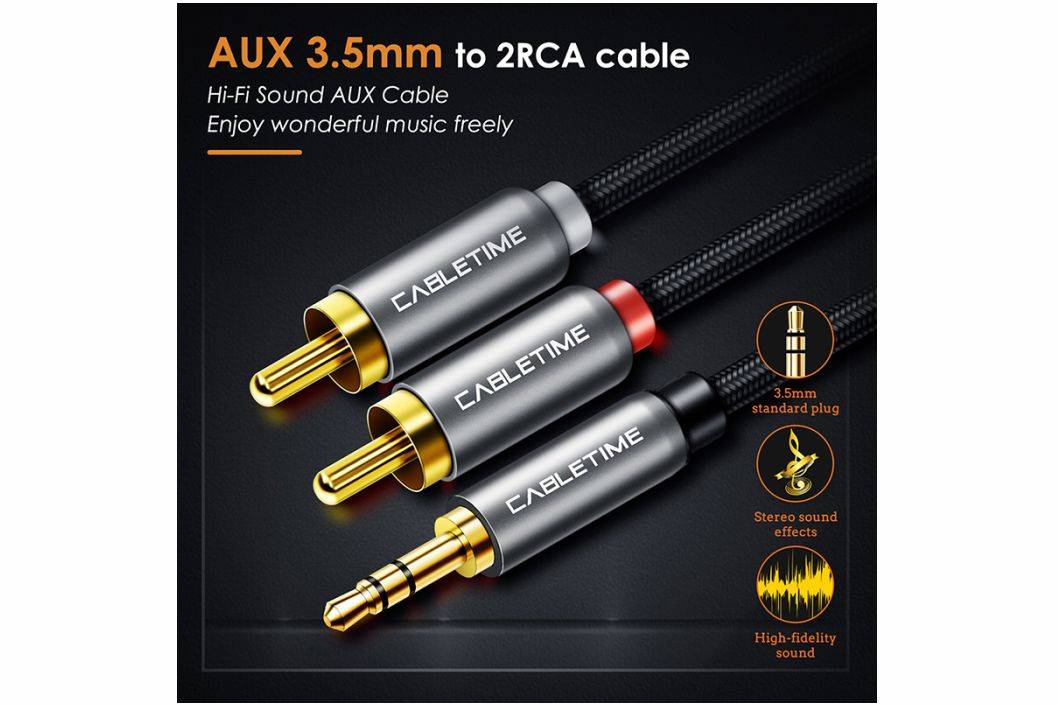 ⚡️CABLETIME Kabel Aux to RCA Audio 3.5mm Male to 2 RCA Male Converter Hi-Fi Sound⚡️