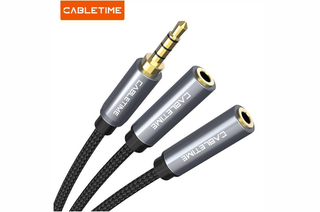 CABLETIME Kabel Splitter Audio Mic Aux 3.5mm to two 3.5mm Aux Female Braided Hi-Fi Clear Sound Braided CF14B