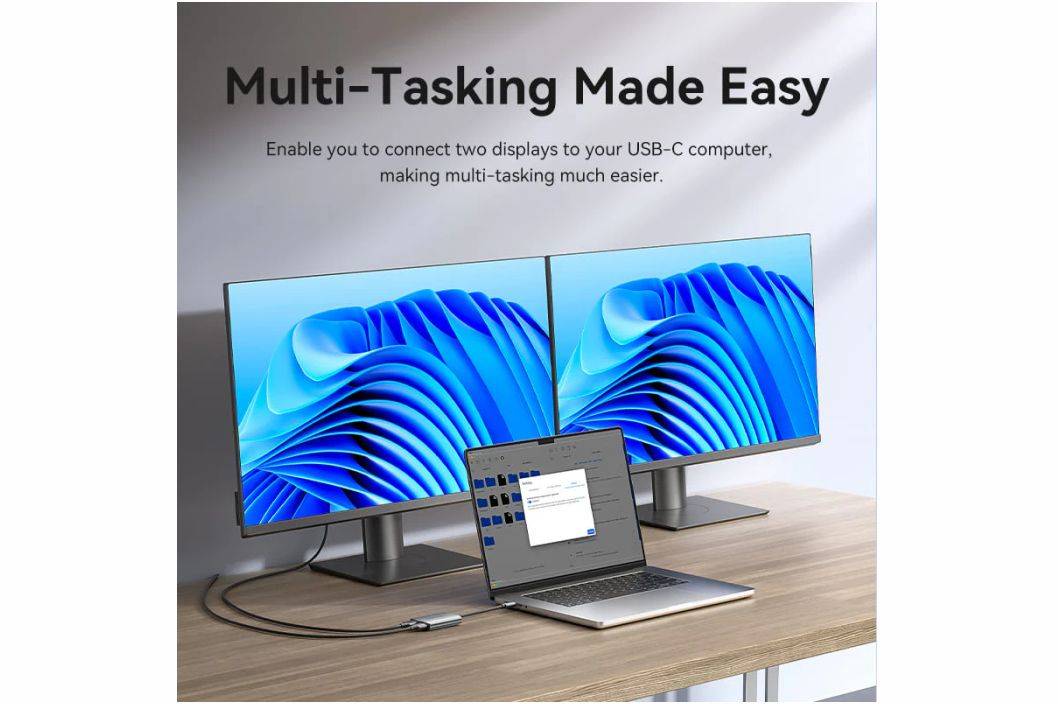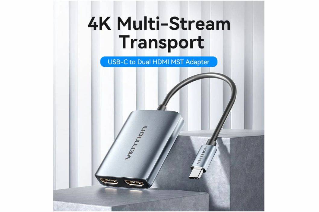 SPECIFICATIONS:🔹Brand : Vention🔹Product : USB to Dual HDMI MST Adapter🔹Interface : USB-C Male/HDMI Female x 2🔹Electroplating Process : Nickel-Plated🔹Material : Aluminium Alloy + PET🔹OD : 4.5mm🔹Windows/macOS( SST/MST) :4K@30Hz (HDMI)/ 1080P@60Hz (HDMI);4K@30Hz/ 1080P@60Hz (HDMI + HDMI)