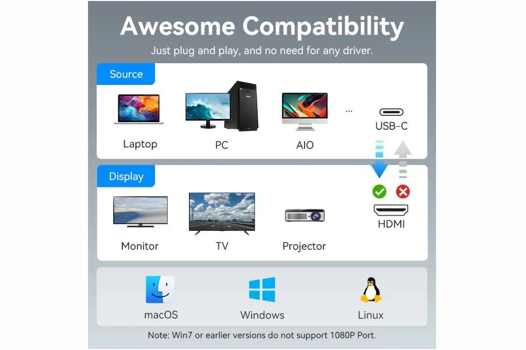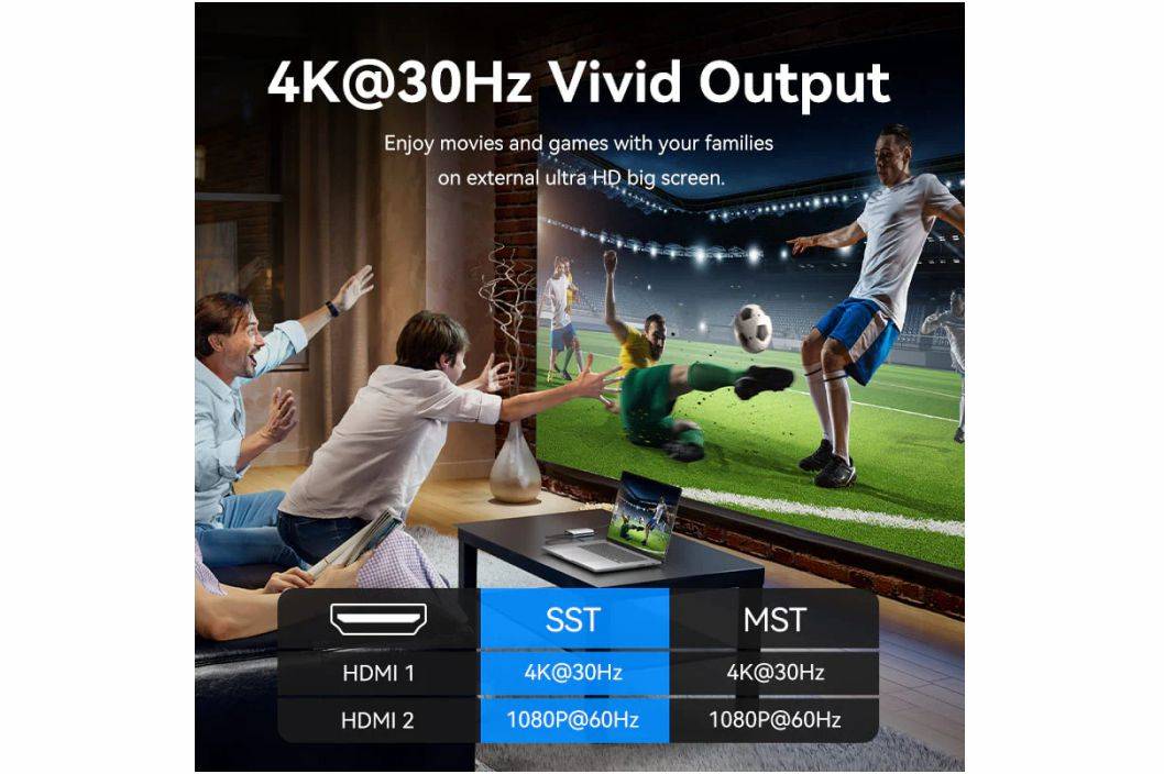 FEATURES :🔹ResolusiACZ : HDMI 1 : 4K@30Hz, HDMI 2 : 1080P@60Hz🔹Support MST (Multi-Stream Transport)🔹Compatible with system Windows, Mac OS