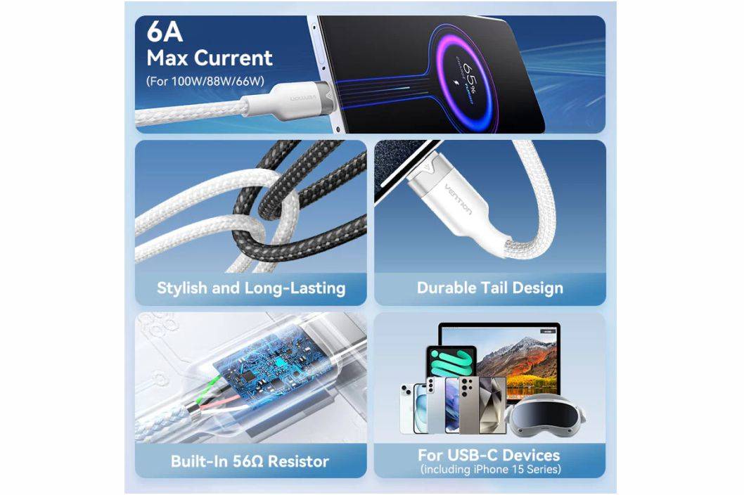 Vention Kabel Data Charger USB A 2.0 to Type C Type-C 6A Fast Charging CTO