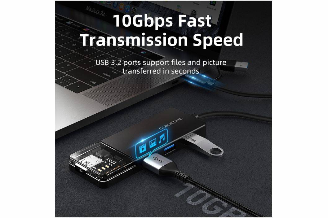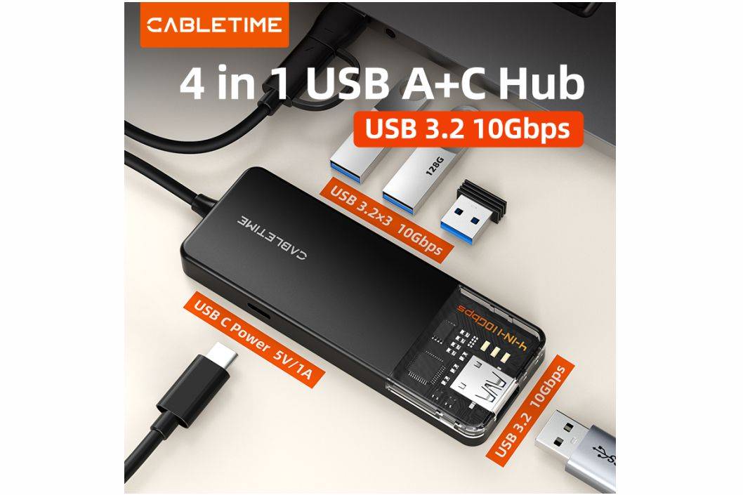 CABLETIME Multiport USB Hub USB C USB A 3.2 High Speed w/ Power for Windows Apple Mac Linux CB05B