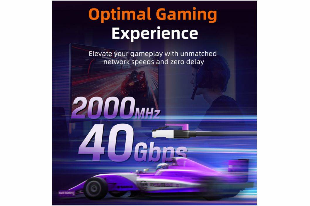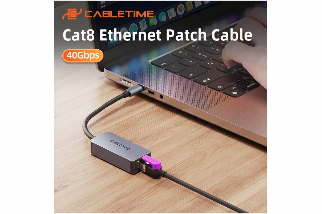 Use CABLETIME Cat 8 patch cable for the best gaming and streaming experience. With 40Gbps speeds and 2000MHz bandwidth, it reduces latency and provides a seamless connection for all your high-speed Internet needs