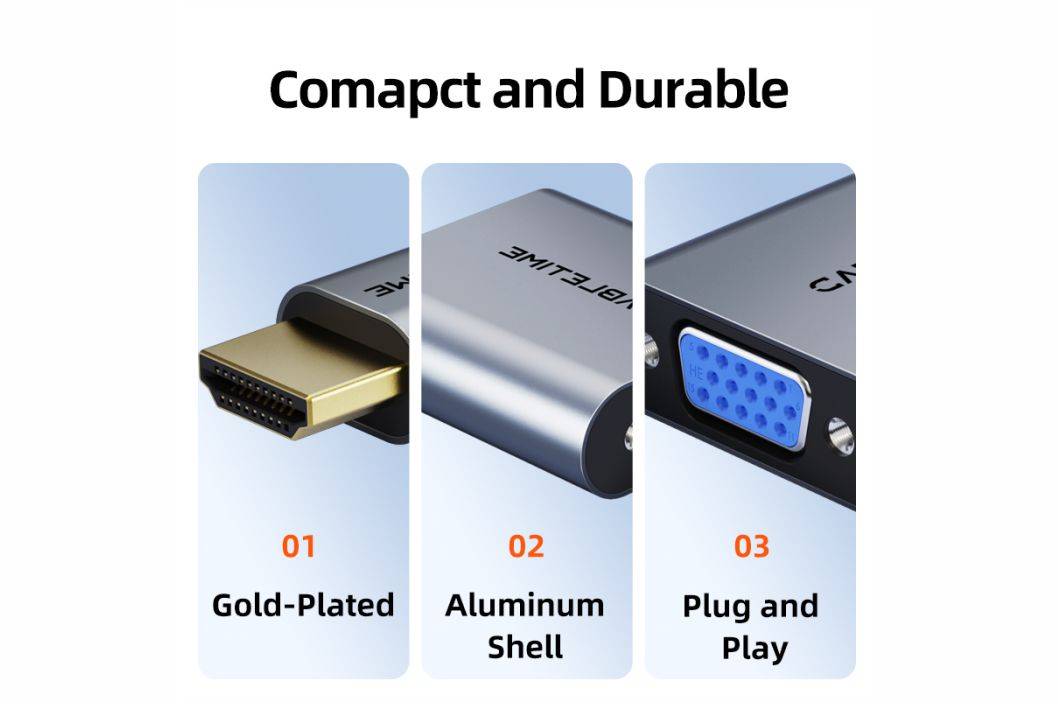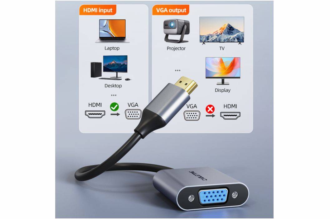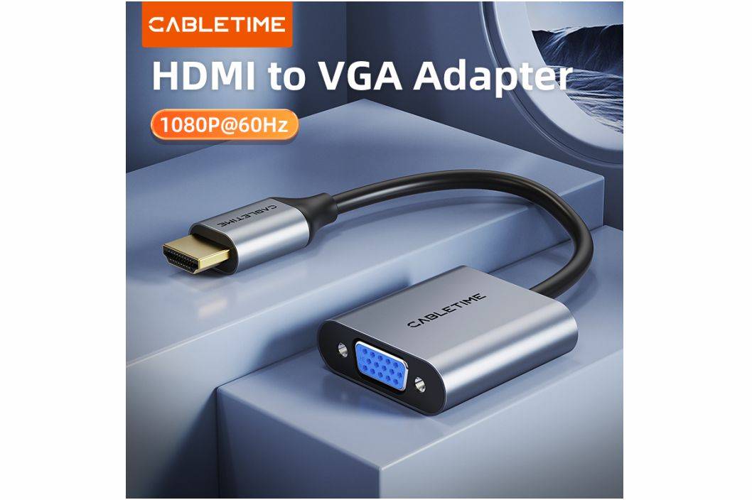 CABLETIME HDMI to VGA adapter seamlessly connects HDMI devices to VGA displays like TVs, monitors, and projectors, delivering crisp 1080p visuals