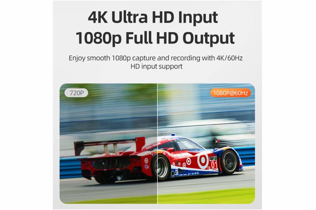 Product Features: * Capture vibrant 1080P video at 60Hz for live streaming and recording. * Supports 4K 30Hz input for high-quality video content. * Dual USB A and USB C ports offer flexible connection options. * Stream smoothly with USB 3.0 speed, up to 5Gbps data transfer. * Wide compatibility with laptops, desktops, TVs, phones, and game players. * Plug-and-play design requires no additional drivers or power supply. * Sleek aluminum alloy shell ensures durability and portability. * Built-in smart chip delivers low latency and stable performance. * Perfect for gaming, live broadcasts, and on-the-go streaming setups. * Lightweight and compact design fits easily into any pocket or bag.