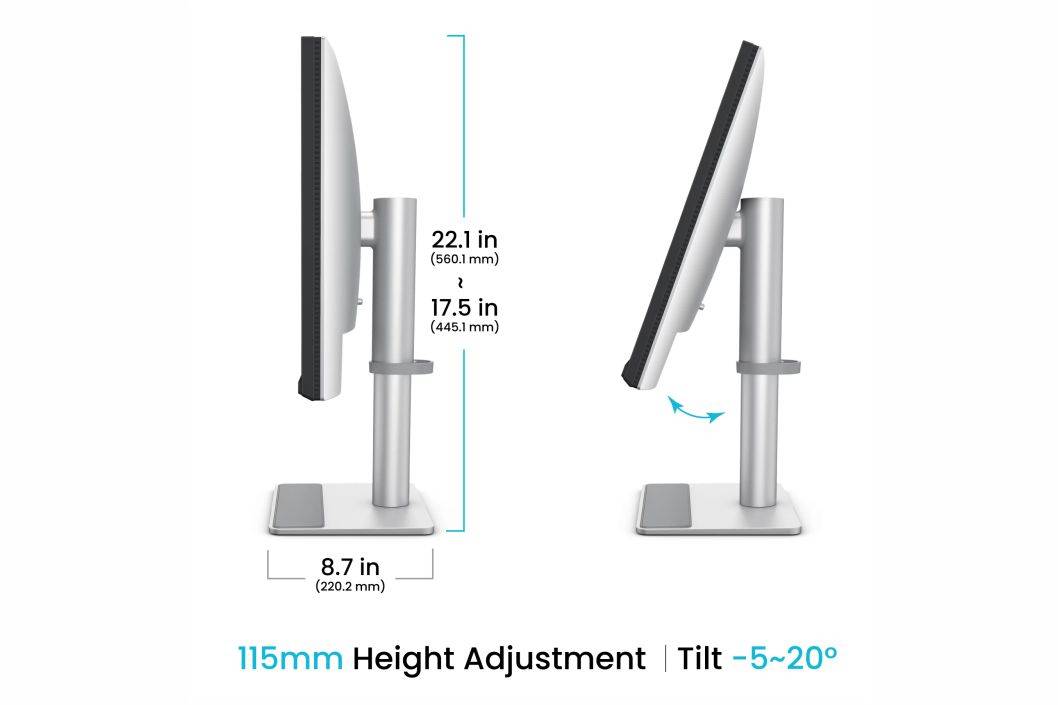 Adjustable Stand: Height: 115mm, Swivel: 15°/ 15°, Pivot: 90°, Tilt: -5° ~ 20°