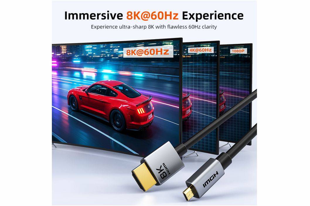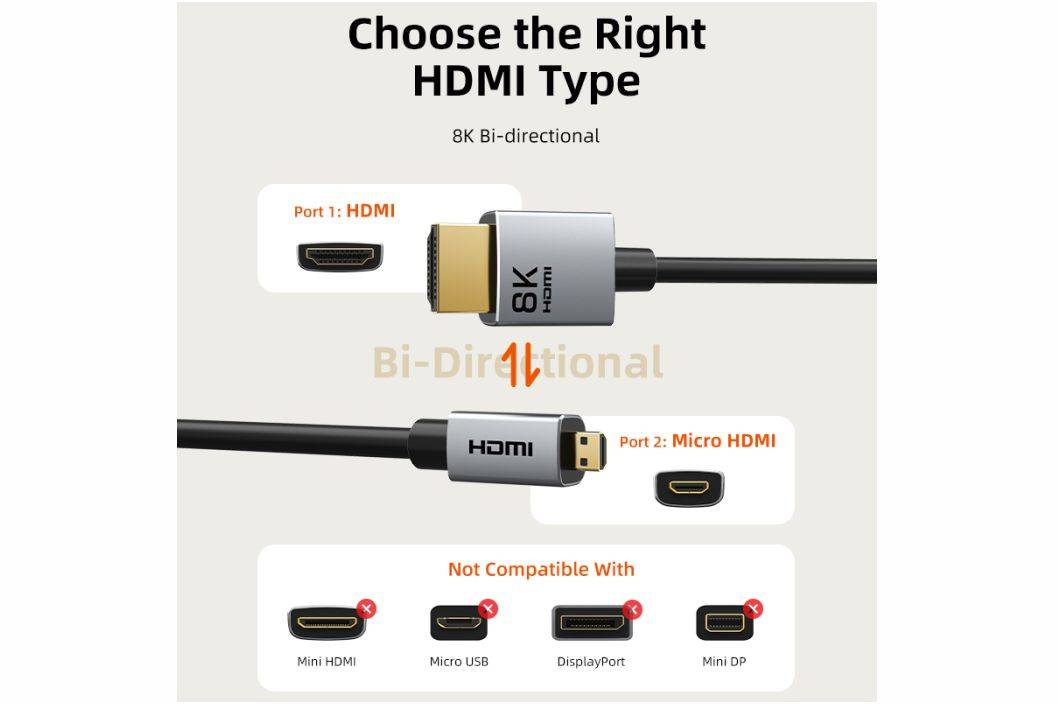 Product Features : 8k Micro HDMI to HDMI Cable Bi-Directional Support Resolution Support : 8K60HZ/4K120Hz Up to 48Gbps bandwidth Support dynamic HDR, 3D visual effect Flexible and durable TPE jacket