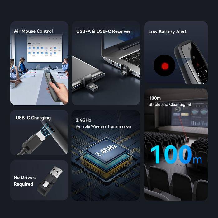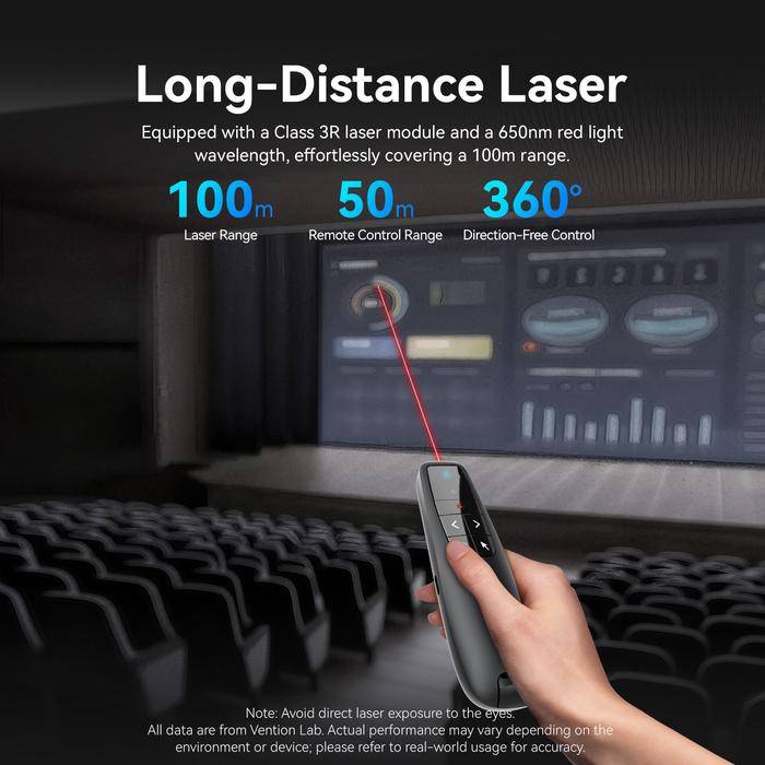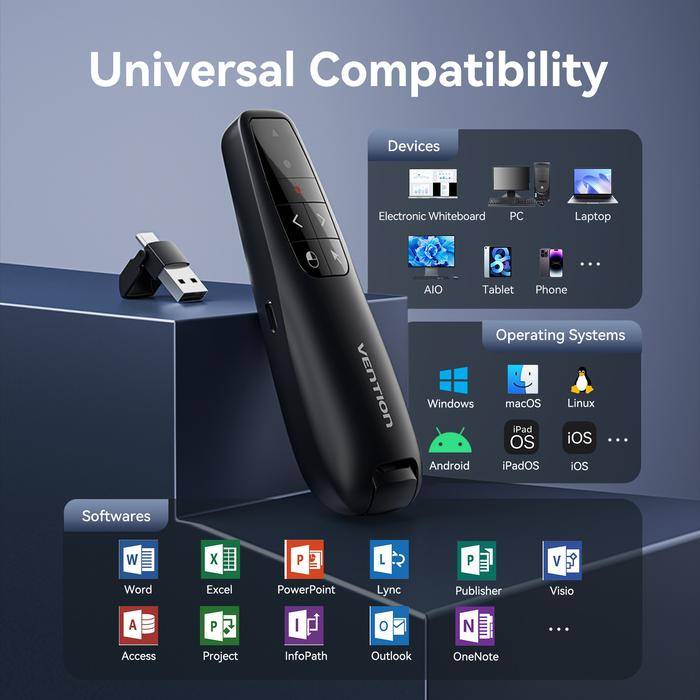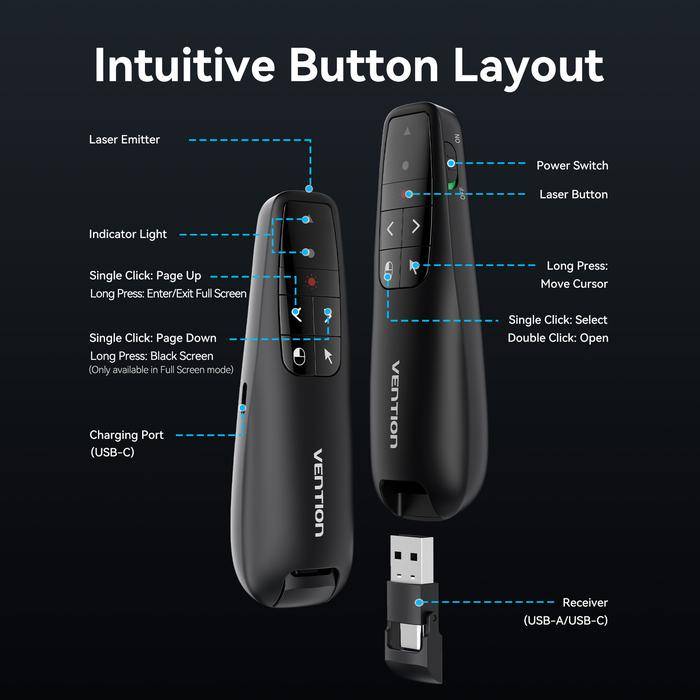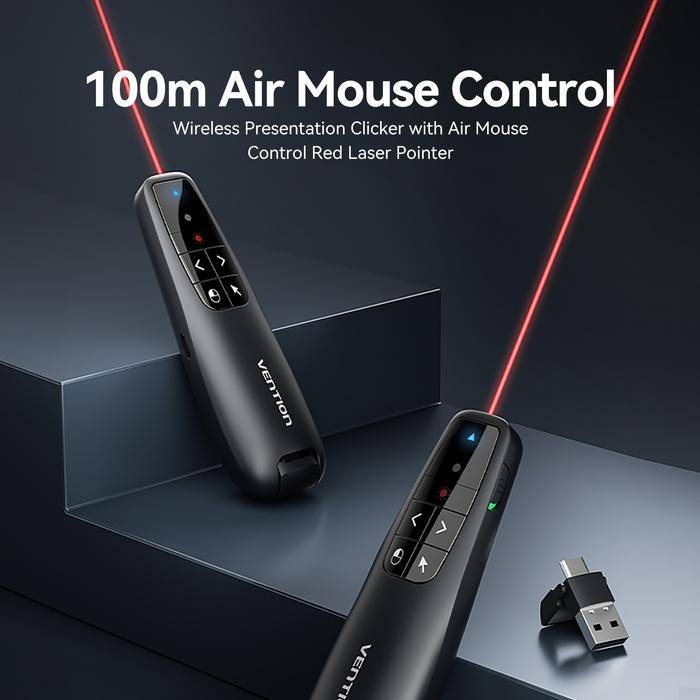 Vention Wireless Presenter Remote Red Laser Pointer With Air Mouse USB-C USB-A Receiver KQP